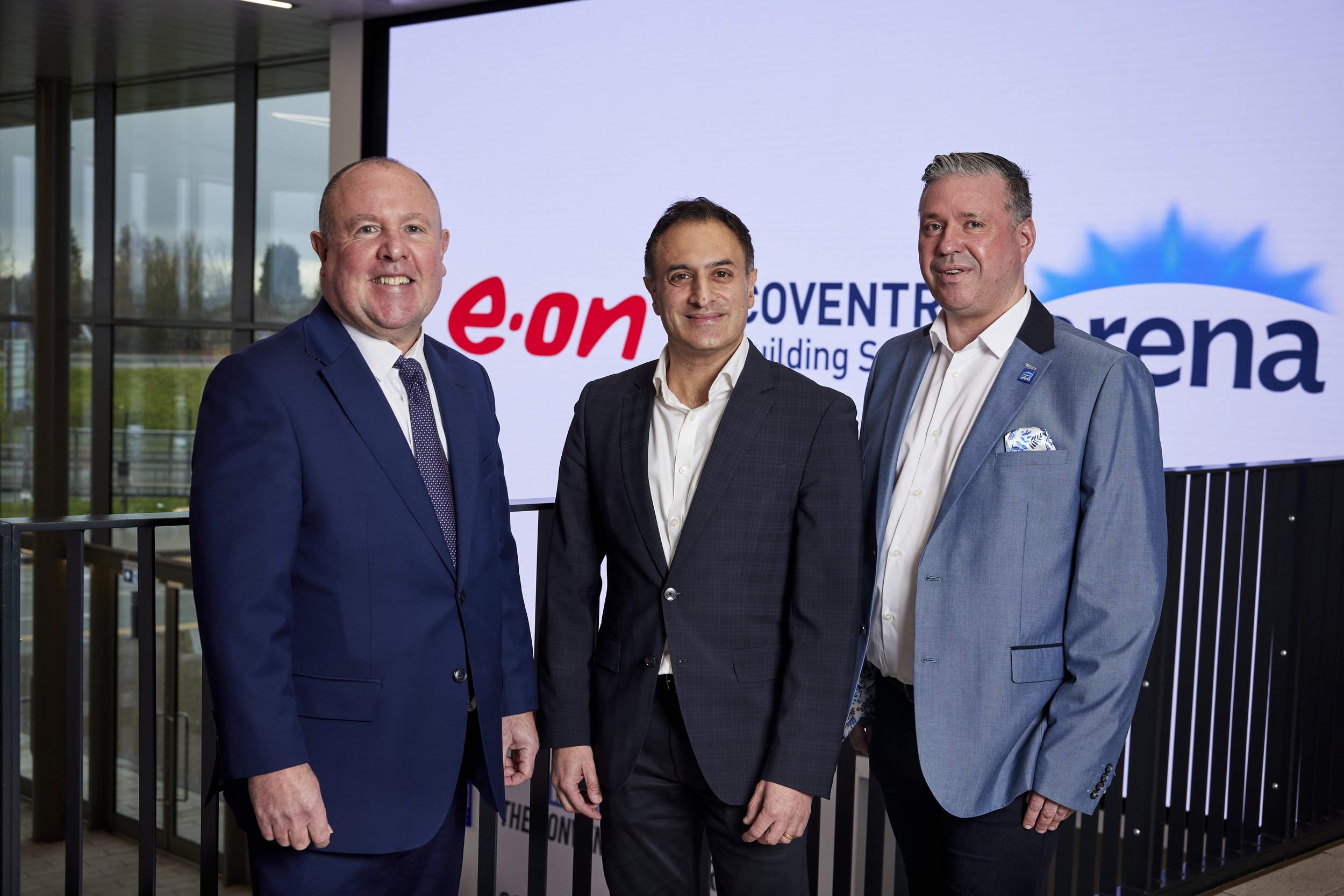 Councillor Jim O’Boyle (Coventry City Council), Vijay Tank (E.ON) and Paul Michael (Coventry Building Society Arena).